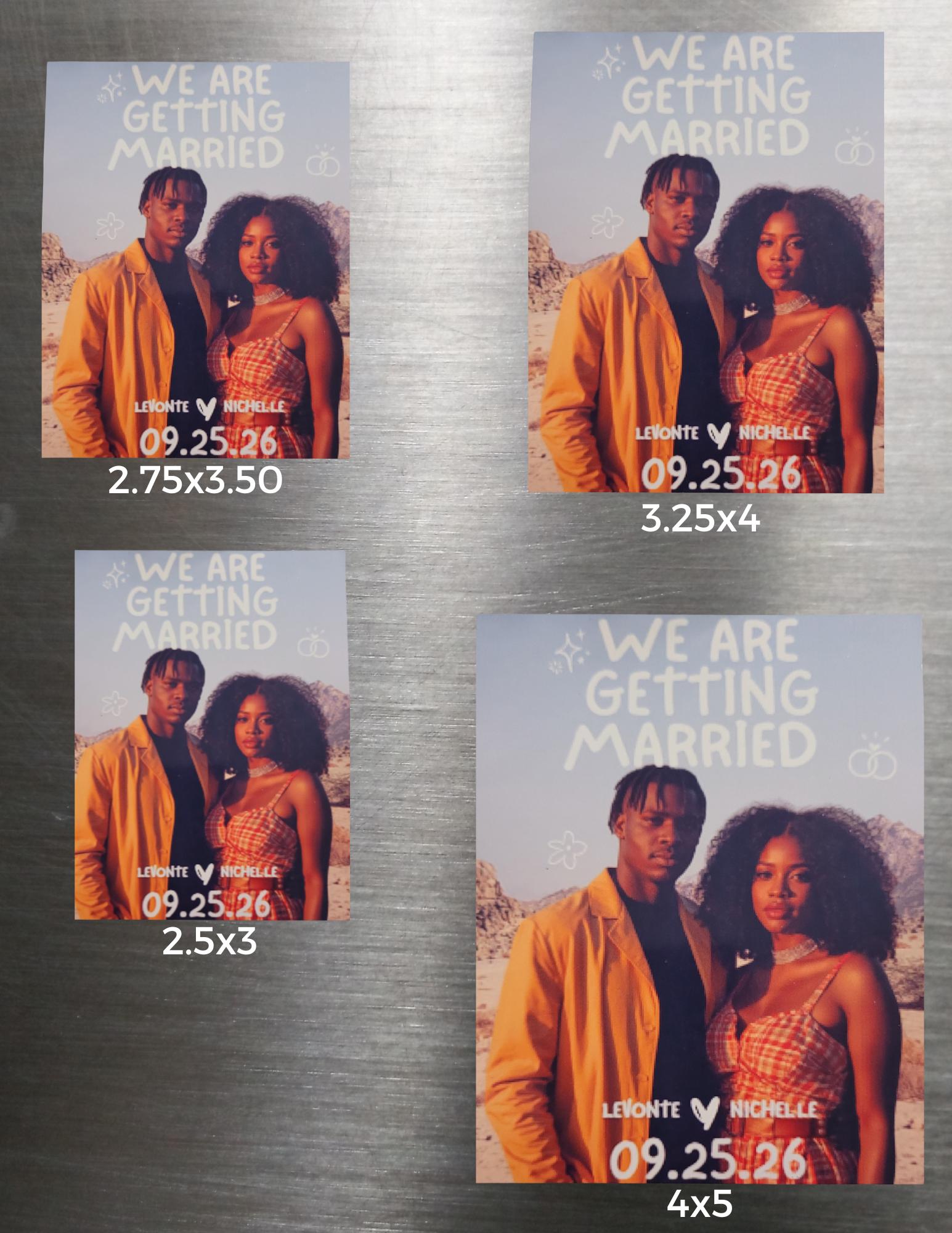 Perfect for save the dates, wedding invitations, or unforgettable wedding favors. Turn your favorite moment into a keepsake your guests can cherish for years with a custom photo magnet designed to be displayed and remembered.